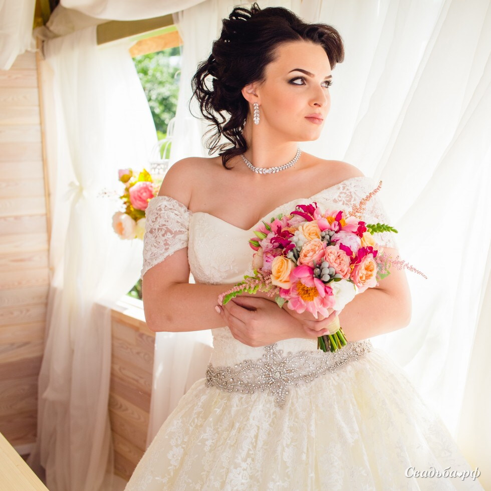 Разнообразие ярких сочных по оттенкам цветов в этом букете (пионовидная роза, глориоза, пионы Coral Sunset) делает его центральным аккордом на торжестве. По отзывам невесты, Анны, он прожил не только день свадьбы, но и еще 1,5 недели у подружки, которая его поймала!
