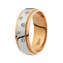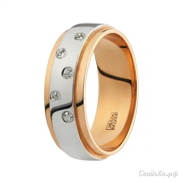 Восхитительное обручальное кольцо из комбинированного золота 585 пробы и декорировано бриллиантами. Изюминкой украшения является драгоценные камни, необычно расположенные на широкой полосе из платины и мерцающие, словно маленькие звездочки. Исключительное удобство при носке обеспечивает специальная отделка внутренней части, поэтому изделие можно не снимать на ночь. Это чудесное обручальное кольцо обязательно оценят поклонники необычного дизайна.