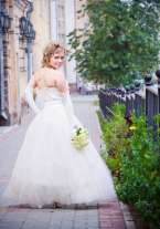 Продаю недорого свадебное платье цвета топленного молока, с ручной вышивкой бисером. в комплекте сумочка из фатина в цвет платья, ниточка жемчуга на шею, перчатки. Если кому важно, у платья хорошая аура;)