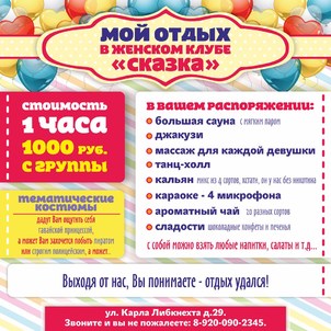 Женский клуб "Сказка" приглашает ВАС и ваших подруг совершить удивительное путешествие в мир отдыха и удовольствий!
